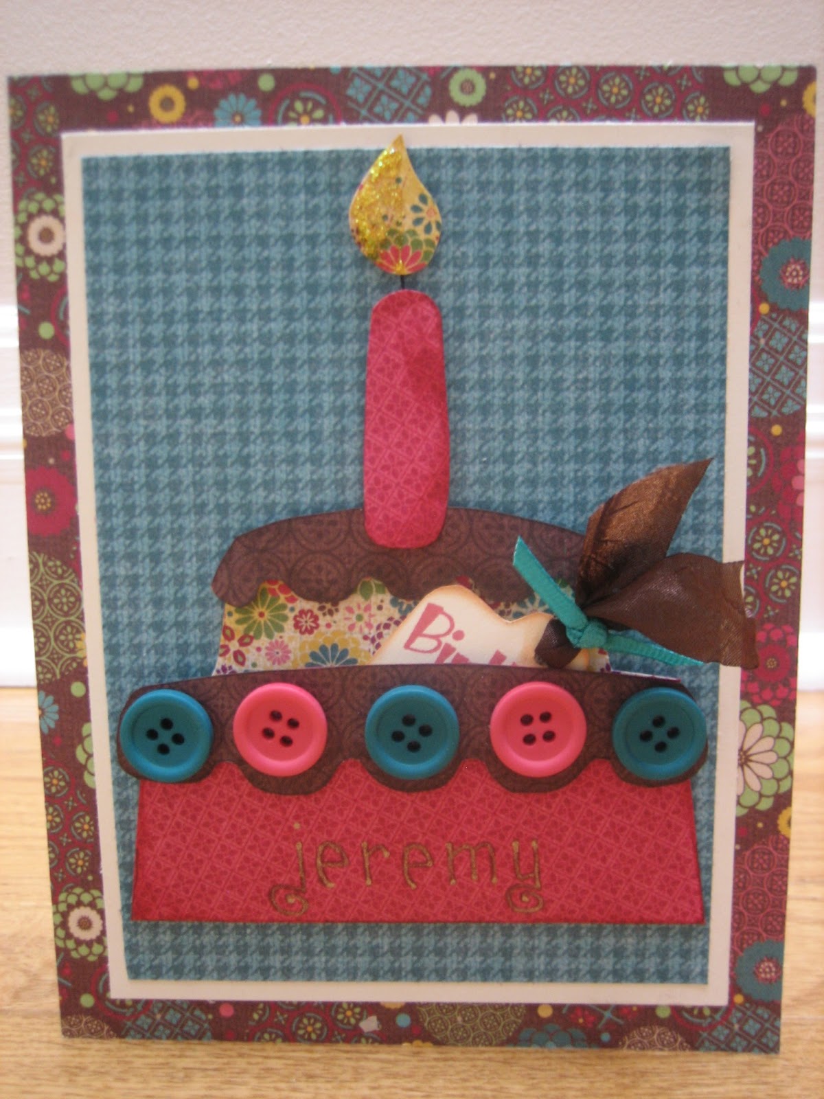 The design for this card was copied directly from the Paper Wishes website, and uses the fabulous double-sided paper pack "Kaleidoscope," and the "Playful Pockets" template. The lower cake layer is a pocket that could hold a gift-card or extra greeting. The sentiment stamp is "birthday4you" from The Stamps of Life; Stickles on the candle; all other supplies, Paper Wishes.